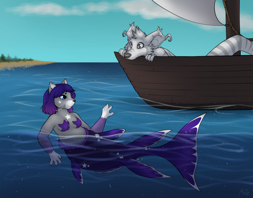 When their shared expedition neared a turning point, Galaxy stopped before a gate of coral. Her fin shimmered like angel dust under the moonlight. Cinnamon, who had travelled the marine domain at her side, felt for the first time the quiet weight of goodbye. “Do not worry,” she said softly. “My way is not dictated by stone, but by the currents calling me onward.” She turned with elegance and continued on her path, leaving behind nothing but sparkles of light. Her story does not end here – it simply changed its course.